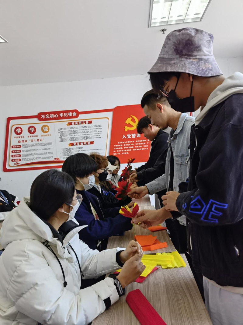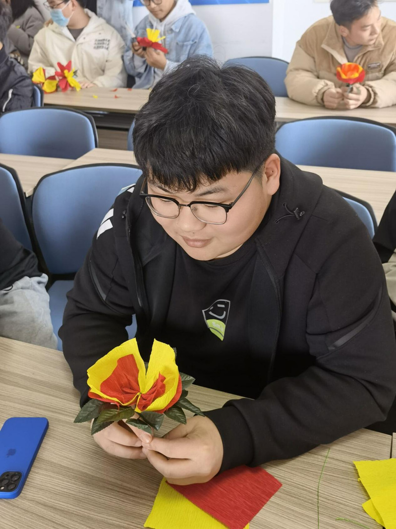 近日,机械工程学院教师和男生代表齐聚图书馆908会议室,秘密为学院女生准备独一无二的专属礼物。他们先将彩色纸折成花状,又拿起剪刀精心修剪花蕊和花瓣,最终制作成一朵朵永不凋谢的火红“石榴花”。通过线下线上方式,送给了在校和因疫情尚未返校的女生。