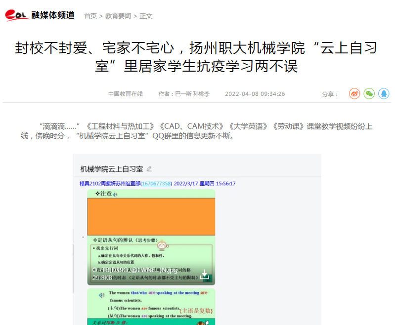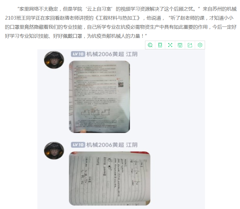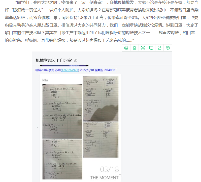 封校不封爱、宅家不宅心,扬州职大机械学院“云上自习室”里居家学生抗疫学习两不误