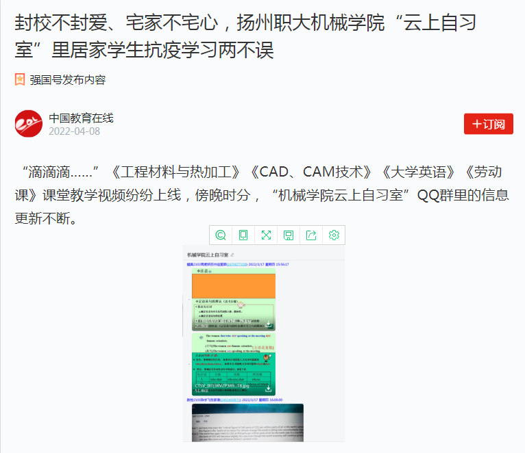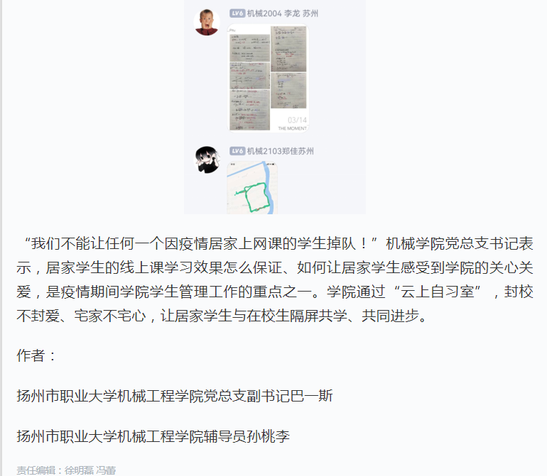 封校不封爱、宅家不宅心,扬州职大机械学院“云上自习室”里居家学生抗疫学习两不误