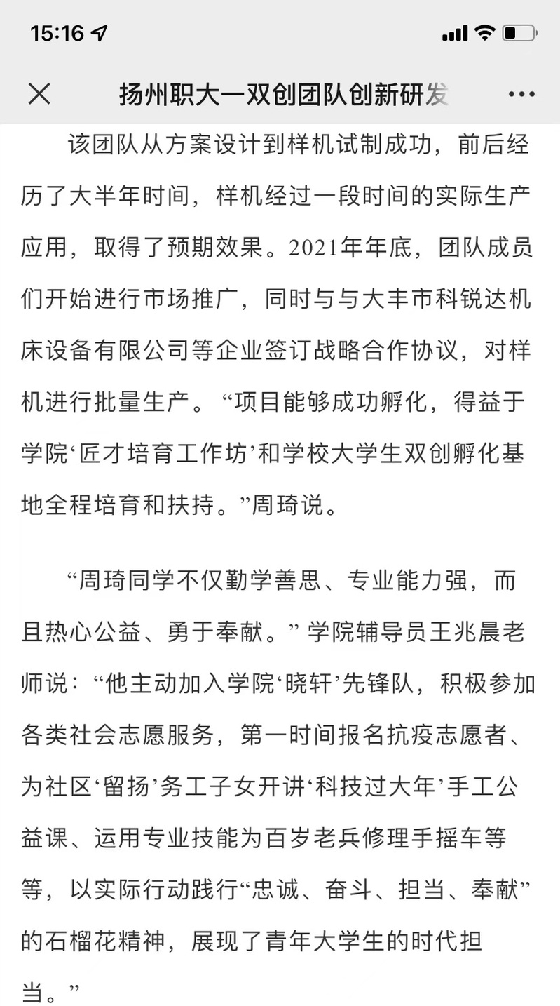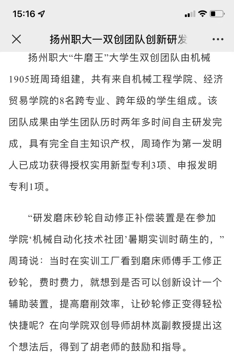 扬州职大——双创团队创新研发智能数控装置提效30%