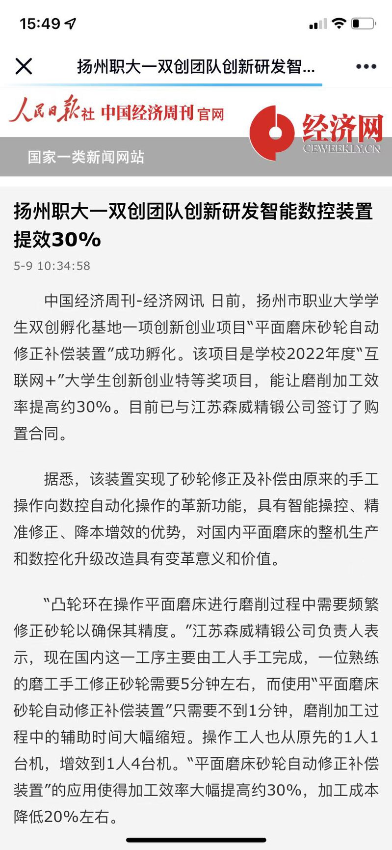 扬州职大——双创团队创新研发智能数控装置提效30%