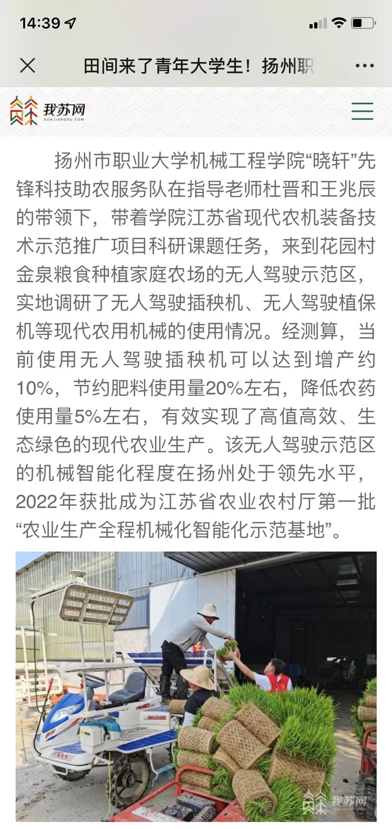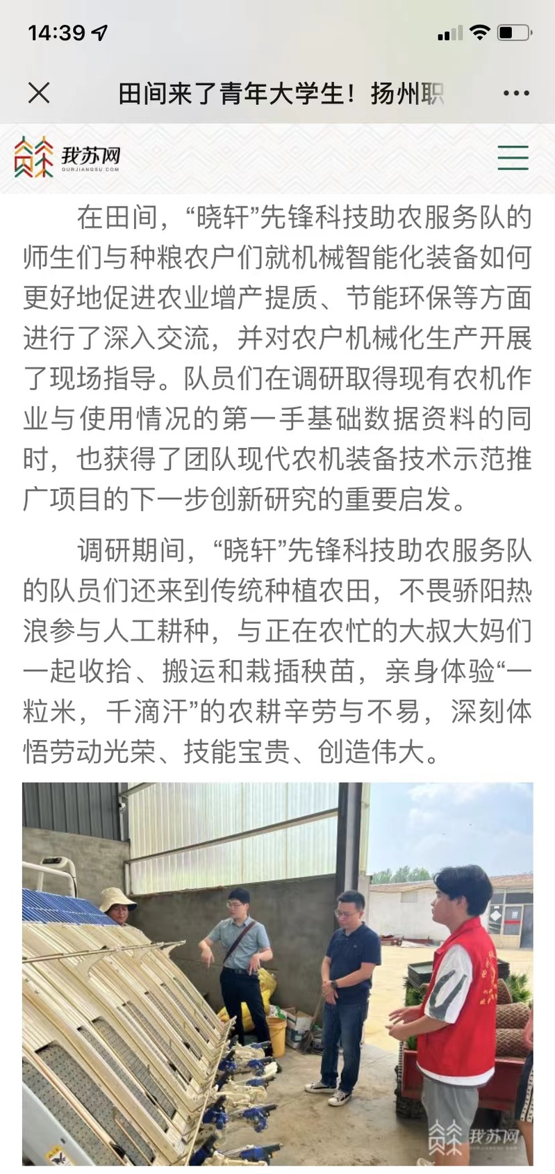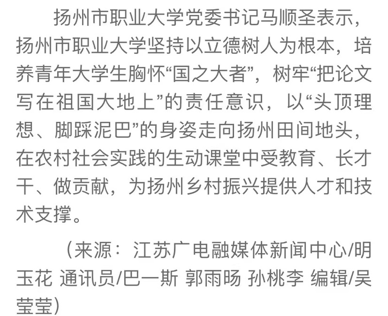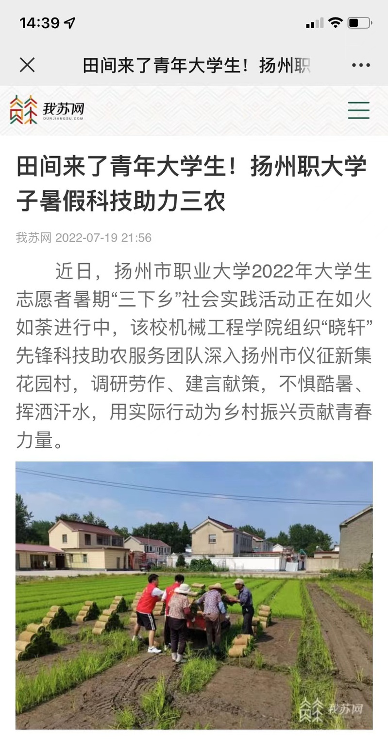 田间来了青年大学生!扬州职大学子暑假科技助力三农