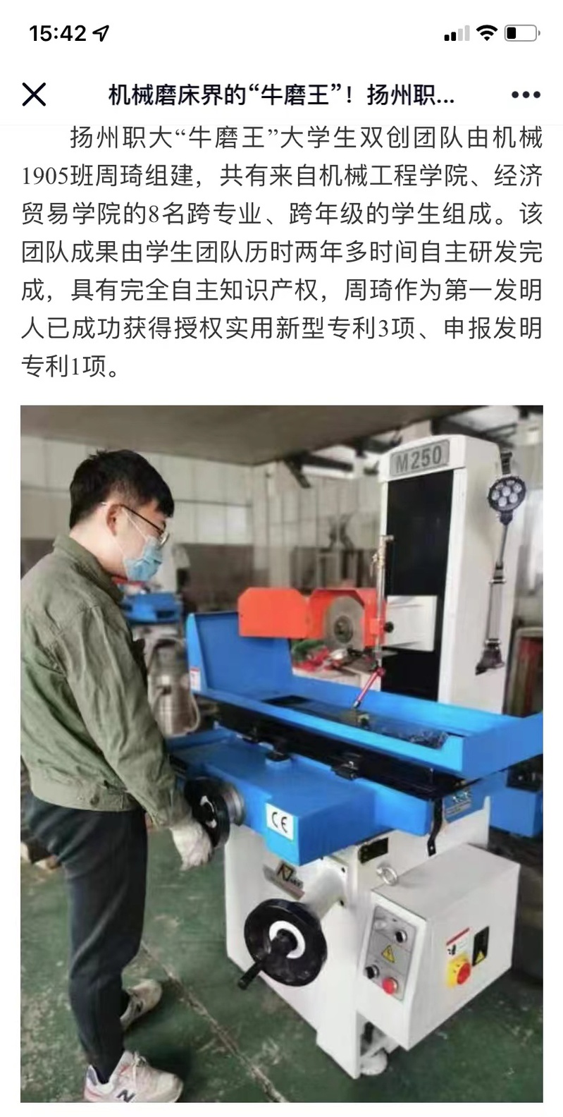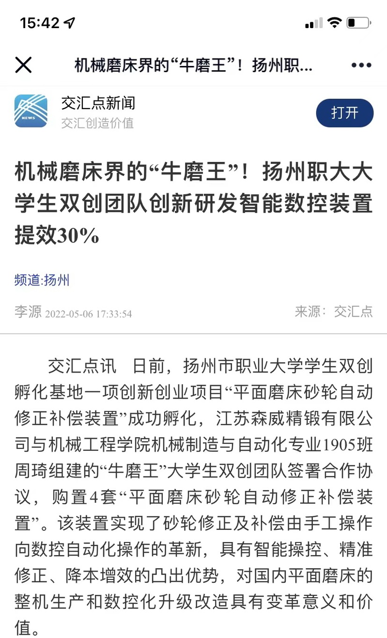 机械磨床界的“牛魔王”!扬州职大大学生双创团队创新研发智能数控装置提效30%