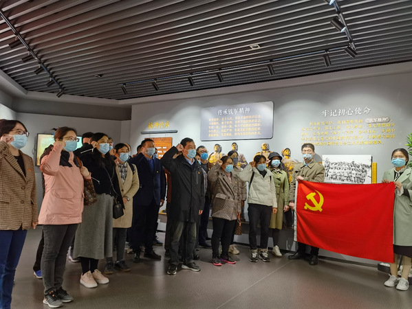 郭村保卫战纪念馆分设“驰援·保卫半塔”“移师·进驻郭村”“决策·斗智斗勇”“固守·挫敌围攻”“反击·军政全胜”“传承·砥砺奋进”六大展陈区,学院党员们跟随讲解员认真聆听讲解,仔细观看珍贵的文物档案和图像影音,重温新四军英勇抗敌的光辉战斗历程,学习革命先辈为国为民、勇于牺牲的崇高革命精神。在馆内,党员们在学院党总支书记张兆东的带领下,面向鲜红的党旗重温入党誓词。