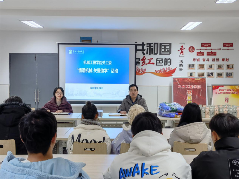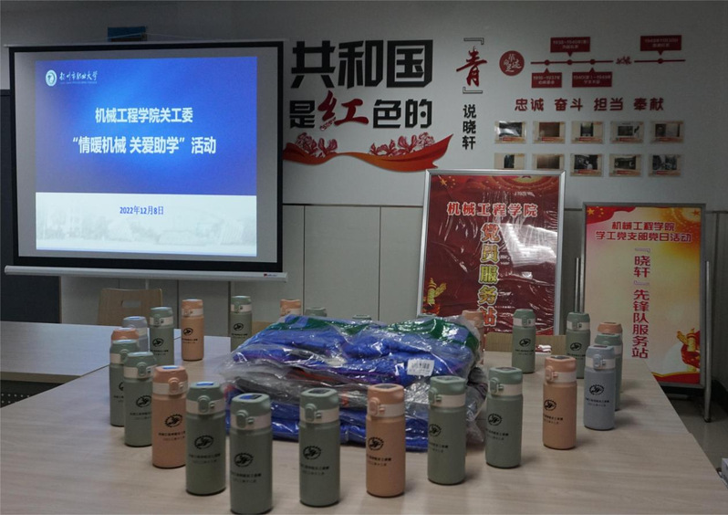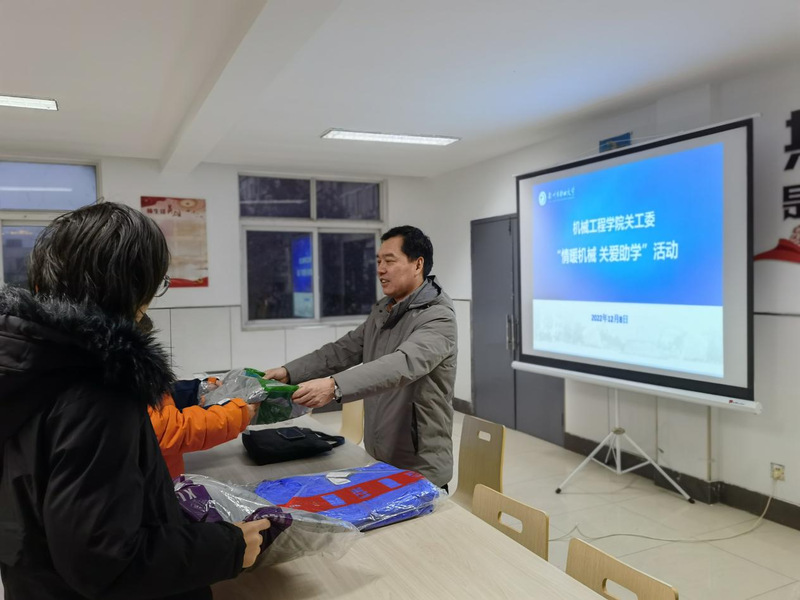 为宣传贯彻落实党和国家有关的资助育人政策,关心关爱需要特殊帮助的学生,12月8日下午,机械工程学院关工委在生活区15栋学生宿舍楼的“一站式”学生服务室开展“情暖机械 关爱助学”暖冬活动,为80余名需要特殊关爱的学生发放御寒用品。
