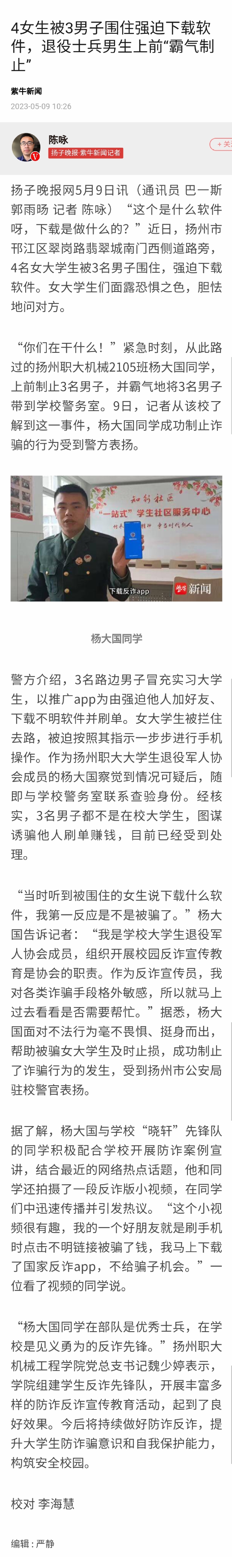 4女生被3男子围住强迫下载软件,退役士兵男生上前“”霸气制止”