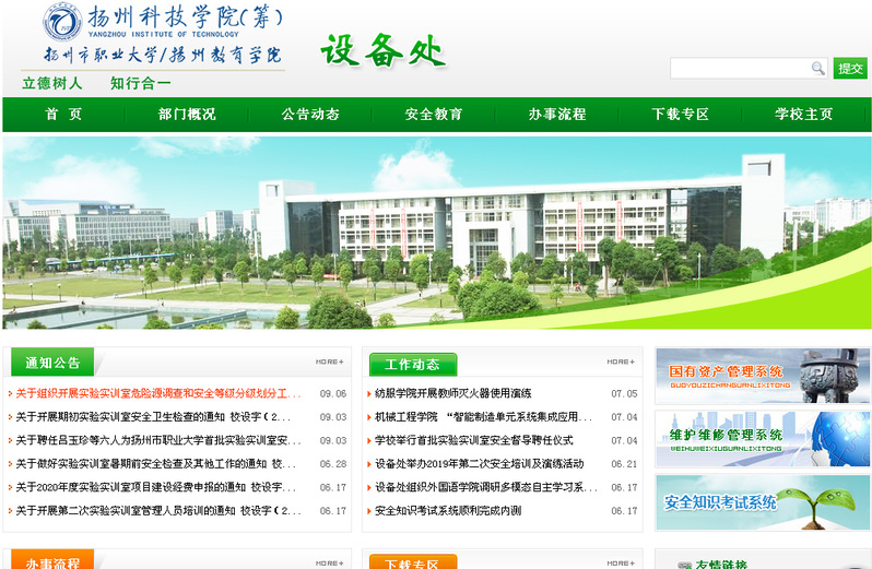 在浏览器中输入网址http://test.labsafe.yzpc.edu.cn/pc/或访问学校设备处网站首页,点击