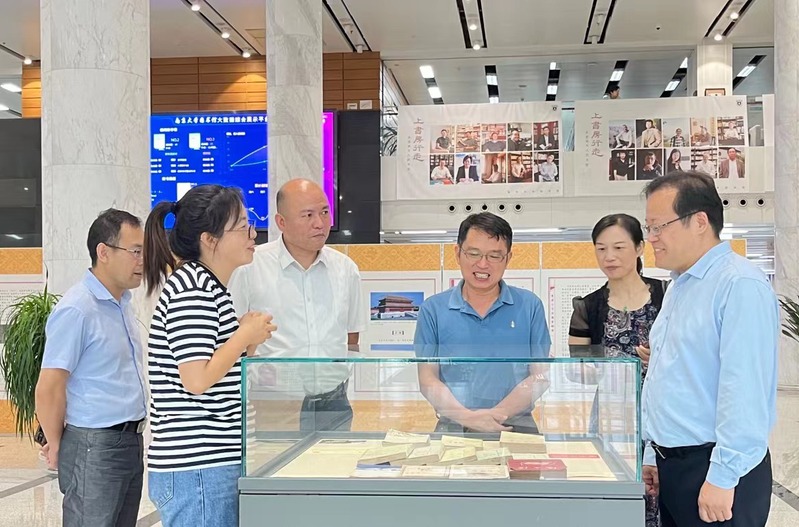 调研中他们先后参观了南京大学图书馆举办的“青春正当时—追寻习近平总书记的读书脚步”展览;“珠还合浦历劫重光—《永乐大典》的回归和再造”展览;部分馆藏古籍善本和地方志;南京大学文献修复中心等,并与南京大学图书馆馆长黄贤金进行了深入交流,对南京大学图书馆在文化传承方面所做的努力给予了高度赞赏。在调研过程中,他们还深入了解南京大学《中国思想家评传丛书》的编撰、出版及海外传播情况,希望能够加强与南京大学在学术研究和文化传承方面的合作。