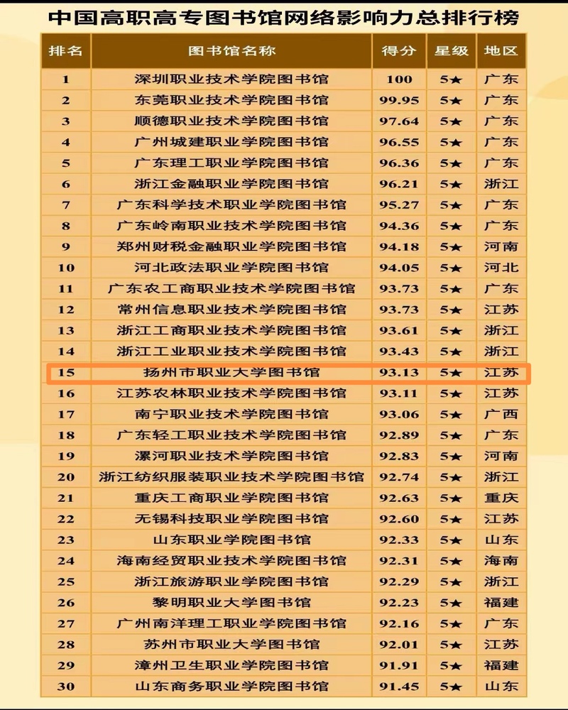 近日在武汉大学中国科学评价研究中心、中国科学学与科技政策研究会科学计量学与信息计量学专业委员会联合研发《中国图书馆网络影响力评价报告(2023-2024)》中,betway必威中文版 图书馆在1489所高职高专图书馆中位列第15位,在江苏省同类院校图书馆中排名第二。