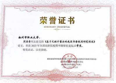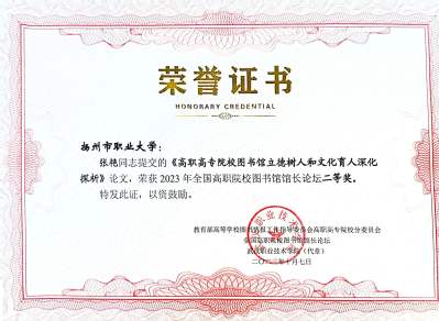 近日图书馆传来好消息,在教育部高校图工委高职高专院校分委员会组织开展的“2023年全国高职院校图书馆馆长论坛案例与论文征集”活动中,图书馆馆长张艳的论文《高职高专院校图书馆立德树人和文化育人深化探析》和馆员周溢青的论文《基于文献计量法的我国书香校园研究综述》分别荣获二等奖。