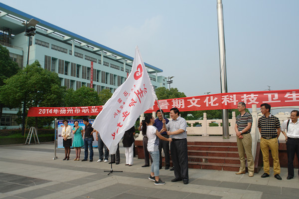 最后,在欢快的音乐声中,许金如为校“迅雷志愿者小分队”授旗;接着台上的各位领导为各学院暑期社会实践队伍代表授旗,场上响起热烈的掌声。