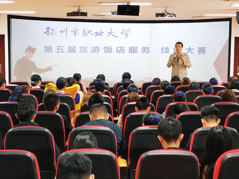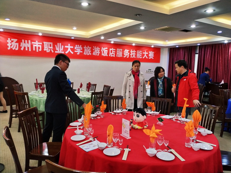 11月1日,在扬州市润扬职业技能鉴定所的大力支持下,旅游学院组织了旅游饭店服务技能服务技能认证暨服务技能大赛初赛,我校继续教育学院院长谈永祥、副院长黄瑞亲临现场指导。本次技能认证按照国家旅游饭店高级服务师职业资格的标准开展,包括中餐主题摆台、中式主题铺床2个项目。其中,中餐主题摆台技能认证由仪容仪表、技能考核、理论考核构成,中式主题铺床技能认证由仪容仪表、技能考核、英语口试构成。由于平时认真的训练,96位同学均达到了认证标准,获得了旅游饭店服务技能认证证书。同时,考评组选拔了两个项目总分靠前的各24名同学进入决赛。