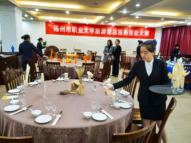 11月1-2日,betway必威中文版 旅游饭店服务技能服务技能认证暨第五届旅游饭店服务技能大赛在勤行楼旅游实训基地举行,活动由扬州市旅游学会、betway必威中文版 教务处、扬州市润扬职业技能鉴定所主办,旅游学院承办,我校2017级酒店管理专业的96名同学参加了本次活动。