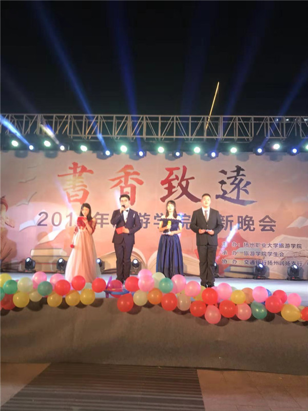 本次晚会以“书香致远”为主题,首先由曹佳生书记代表学院热情致辞,寄语新生“腹有诗书气自华,最是书香能致远”,接下来是由AK街舞社带来动感开场舞《uptown funk》,娴熟的舞步,默契的配合一下子就调动了全场的气氛。酒店1802班曾秋芳同学带来的古典舞《墨韵》,曼妙的舞姿,引人入胜,赢得台下阵阵掌声。接着各种节目轮番上场,异彩纷呈。由藏族同学和他的小伙伴合唱《Fly》将现场的气氛推向高潮,17届学生的小品《奇妙旅行》结合旅游现象,讽刺社会中旅游不文明现象。中印合唱《meraih bintang》是中国文化与外国元素的完美结合;由两位新生班主任自编自导自演的歌舞剧生动展现了大学生对于爱情,友情的珍惜和感动;书法表演配合诗朗诵《颂扬州》,充沛的情感,遒劲的书法,一静一动,展示扬州城的千古风流;一首《稻香》为本场晚会画上圆满的句号,歌声荡漾校园,绽放青春不灭的光芒。