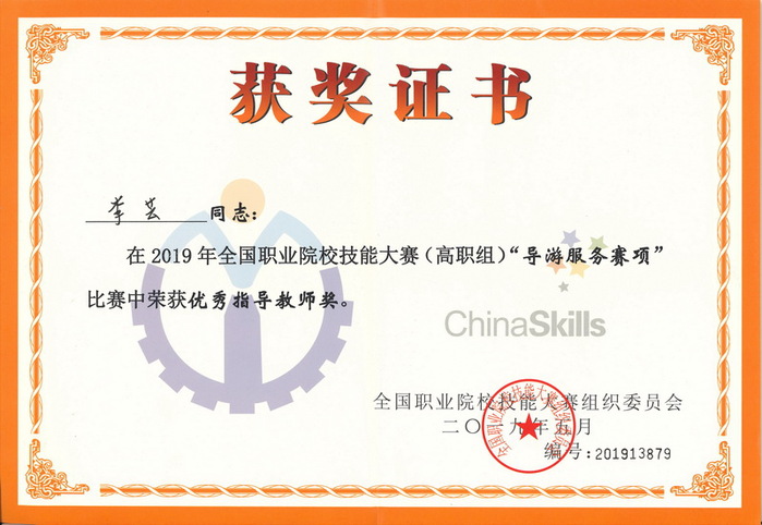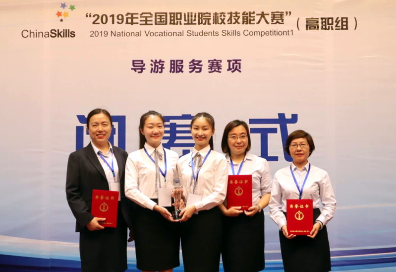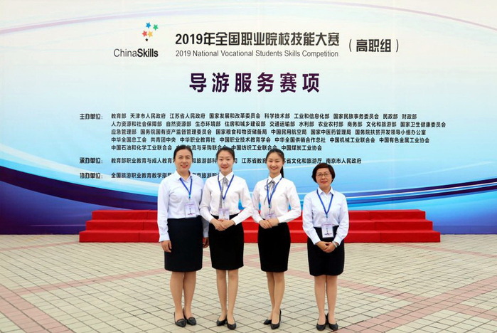 5月28日至31日,由教育部、文化和旅游部等36个部门主办,江苏省教育厅、文化和旅游厅、南京市人民政府承办的2019年全国职业院校技能大赛(高职组)导游服务赛项在南京旅游职业学院举行。来自全国31个省、直辖市、自治区的99所院校的144名选手参加了比赛。在开幕式上,我校王淑宁同学代表全体参赛选手宣誓。经过三天紧张激烈的角逐,旅游学院学生王淑宁以全国第3名的成绩勇夺一等奖,陆晓瑶以全国第16名的成绩获得二等奖,创造了我校选手参赛的历史最佳成绩;李芸教授获得优秀指导老师奖。