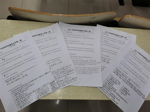 旅游学院于4月23日开展了重温大学第一课的考试。促进同学自觉按照大学生德育目标的要求进行自我教育、自我管理和自我发展。提升学生综合素质,学生政治思想、道德品质、法纪观念、身心健康、文明礼仪、行为习惯、实践能力等。做到按时上课,不迟到,不早退,无早餐,手机归袋,尊重师长,认真听讲,保持卫生,禁止“课桌文化”,保持卫生清洁,用品摆放整齐,无乱贴乱挂,无违章用电,无酗酒赌博,无打架斗殴现象,无夜不归宿现象,积极参加学校活动,乐于助人。
