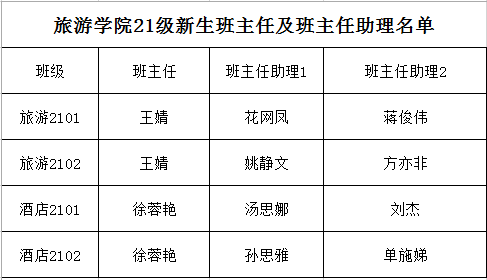 旅游学院21级新生班主任、班主任助理及各班级群信息