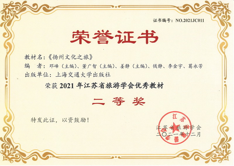 李芸、董广智主编的《旅游概论》获一等奖,邓峰、董广智、姜静主编的《扬州文化之旅》获二等奖。