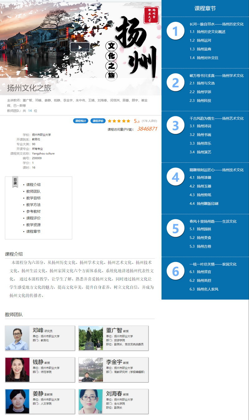 《扬州文化之旅》在线开放课程网址:http://mooc1.chaoxing.com/course/212656299.html