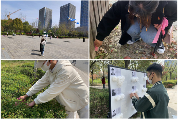 活动提前通过网络在各年级群发布,一发布就引来众多同学的关注,不到半天活动名额就全部报满。4月4日上午10:00,上午场活动正式开始,参加活动的同学根据主办方所提供的线索,寻找藏在教学区内的各种爱心折纸,一张折纸可以兑换一朵小白花,敬献给在疫情防控工作中献出生命的英雄们,找到最多折纸的前五名获得胜利。下午学院还举行了清明习俗放风筝活动。