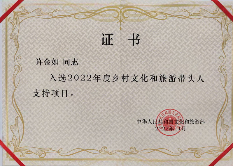 此次文旅部还公布了乡村文化和旅游带头人支持项目,许金如教授的项目获得立项。