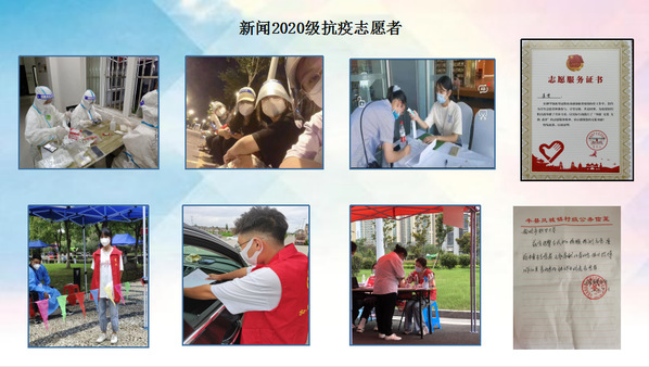 新闻2020级的张擎、陈韵诗、杨梦玲、李雯、夏畅、倪宝捷、毛淑婷、纪劢等同学也分别在课堂上讲述了自己在疫情最危险的时刻不顾个人安危,冲锋在前,勇于奉献,积极参与防疫志愿的故事。他们用实际行动为身边的同学树立了榜样,传递着当代大学生的道德品质和社会价值。