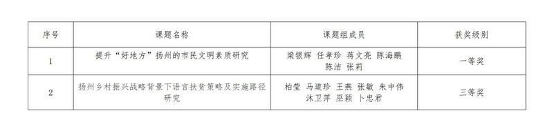 经市社科联组织专家评审,2021年度共有230项成果被评为扬州市2021年度市级社科重点课题优秀成果,其中一等奖50项,二等奖80项,三等奖100项(名单附后)。
