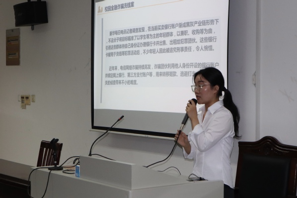 此次讲座围绕着防诈骗犯罪主题展开。阚夏月老师通过大学生的受骗案例,用诙谐幽默的语言,配以趣味视频,浅显易懂地讲解了日常生活中预防诈骗、远离防诈骗等方面的知识。阚夏月老师向同学们提出建议,希望同学们能够牢记防诈骗的危害,了解如何避免卷入防诈骗活动,远离防诈骗犯罪,不入诈骗圈套,学会维护自身权益。