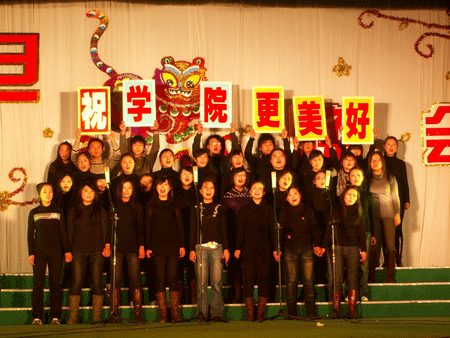 2009 年 12 月 31 日 晚6:30,高邮学院元旦晚会在大礼堂举行,高邮学院领导和学院相关中层干部参加晚会,师生欢聚一堂,喜迎新年。晚会开始前,高邮学院党总支曹书记发表了充满激情的新年致辞。随后,一台洋溢和谐与欢乐、充满团结与奋进的晚会拉开帷幕。师生同台,载歌载舞,整场晚会精彩绝伦,高潮迭起,灯光伴着音乐,汇成了一片欢乐的海洋。(09小教(1)班陈晔)