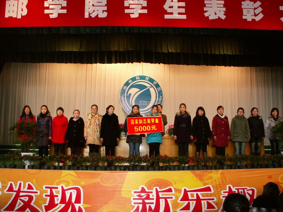 3月10日下午四点,高邮学院2009-2010学年度第一学期表彰大会在学院大礼堂举行。学院领导及学院相关部门负责人出席会议,学院各班班主任和全体学生参加了大会。