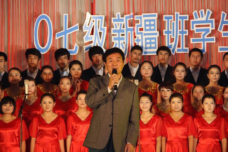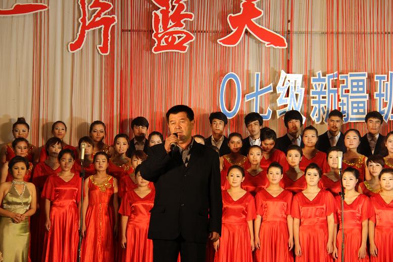 演出结束前,阿校长与蒋校长分别发言。阿校长对新疆班同学在高邮学院一年来的学习表示了肯定,他说,江苏的教育在全国是一流的,希望新疆班的同学们抓住机遇,高标准地要求自己,为新疆的教育事业好好学习,以优异的成绩报效祖国,回报领导、老师及父母。蒋校长则深情地回顾了两校合作办学的经历。他说,今晚一个多小时的汇报,让他看到了新疆同学进高邮学院一年多来的成长、进步和发展,他感到由衷的高兴。他希望新疆班所有同学珍惜机会,不辜负领导、老师及父母的希望,能够在各方面有更加长足的发展。