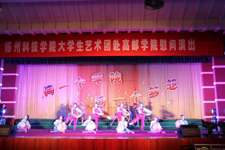 台上,灯光闪耀、豪情满怀;台下,掌声连连、激情飞扬。整个演出俨然成了一个舞的世界、乐的海洋,精彩纷呈的节目为高邮学院的师生带来了一场让人久久回味的艺术盛宴。最后,演出在大型歌舞《走向复兴》中圆满落下帷幕。整台晚会风格明快、主题鲜明,通过舞蹈、歌唱、器乐等形式反映了当代大学生健康文明的生活态度和积极向上的精神风貌。