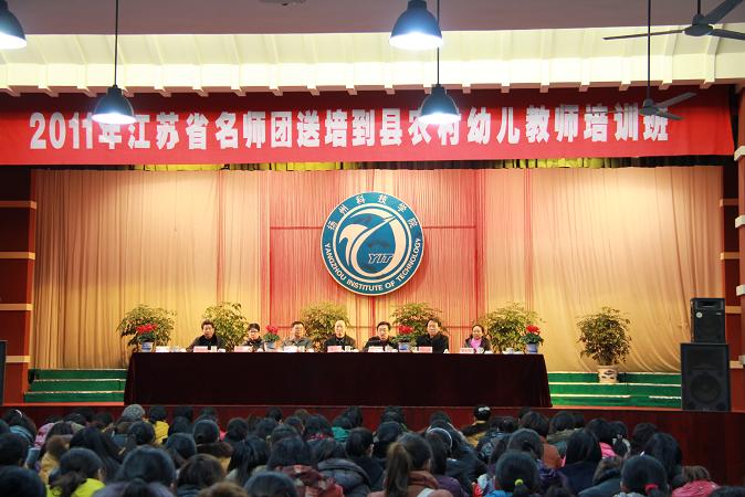 ~18日,扬州市近400名幼儿教师在高邮学院参加为期两天半的江苏省名师团送培到县培训活动。南京晓庄学院教育科学学院院长彭小虎,南京晓庄学院继续教育学院院长黄宁生,扬州市教育局师资处副处长朱江,高邮市教育局副局长戴万顺,高邮学院院长华炜,南京晓庄学院学前教育专业教授、本次培训首席专家史爱华等领导、专家参加了培训班的开班和结业典礼。本次送培活动,通过专题报告、课堂教学观摩、案例分析及研讨等多种形式提升了培训学员的教育教学能力和水平,达到了预期的效果。