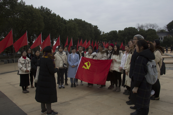 为缅怀先烈丰功伟绩,弘扬爱国主义精神,12月9日,师范学院学工党支部组织师生党员前往镇江茅山新四军纪念馆开展主题党日活动。新党员在党员老师的带领下,宣读入党誓词。