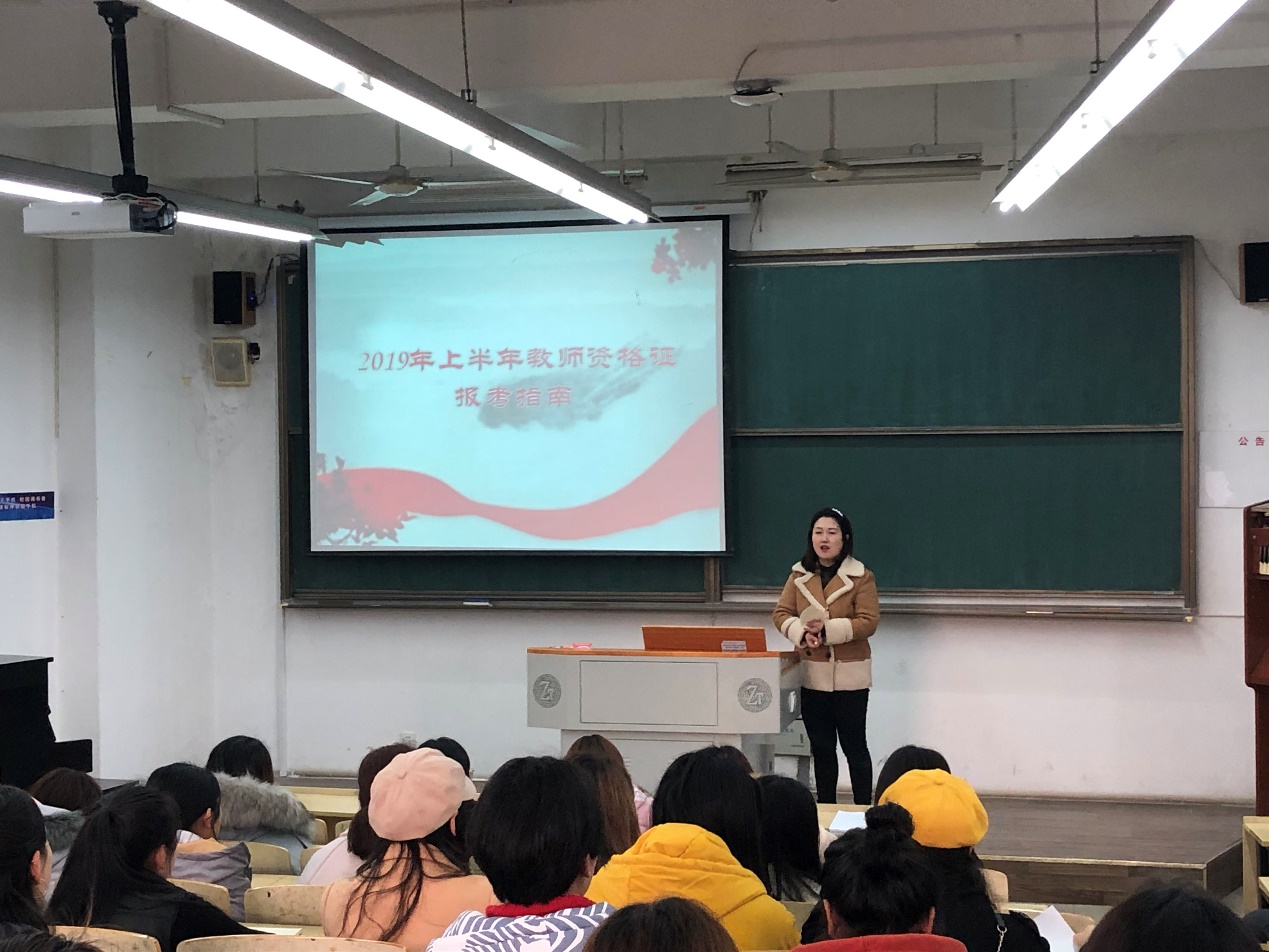 学院小学教育系主任李艳华为同学们详细讲解了教师资格证网上报名的流程和注意事项,也为同学们对于报考和复习中的疑惑提供了细致的解答。学院领导鼓励同学们好好学习,珍惜时光,利用寒假,认真复习,以取得优异成绩。