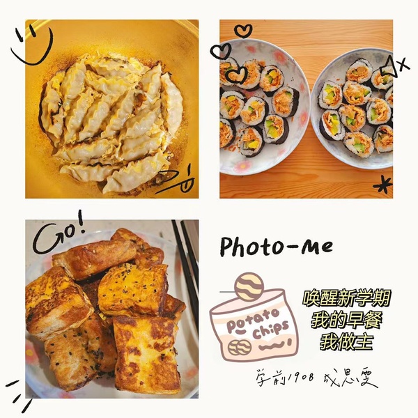 活动一经发布,得到了同学们积极的响应,大家纷纷调整状态,将自己精心准备的早餐、与家人共进早餐、第一课上课等画面向学院投送,让大家一起见证新学期的美好开端。新疆班学生马菲儿准备的早餐颇具特色,学院“五个一”手拉手活动结对的小伙伴王慧也和她通过微信互相晒出自己的手艺,为新学期加油打气。