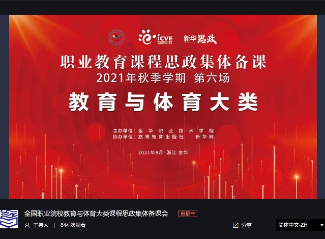 为深入解读课程思政相关政策,发挥课程思政项目引领作用,总结推广职业教育课程思政经验做法,2021年9月25日师范学院学前教育系三十名教师参加了金华职业技术学院主办、高等教育出版社及新华网协办的在线直播会议——“全国职业院校教育与体育专业大类课程思政集体备课会”。金华职业技术学院陈军教授、上海出版印刷高等教育专科滕跃民教授、北京市商业学院教育艺术系刘相俊主任、四川幼儿师范高等专科学校陈亚平老师及金华职业技术学院楼汉葳老师等来自全国示范院校的教育体育专业大类院系领导作为嘉宾出席了本次会议。