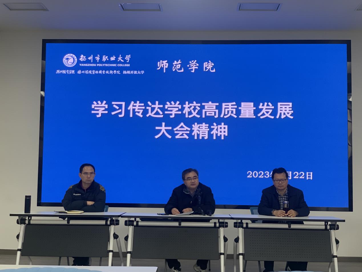 为落实学校高质量发展大会精神和要求,全面推进学院高质量发展,2月22日下午,师范学院召开全体教师会议,学习传达学校高质量发展大会精神。会议由师范学院党总支副书记刘九林主持,师范学院全体教职工参会。