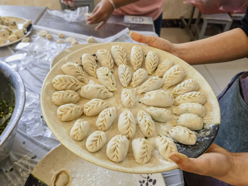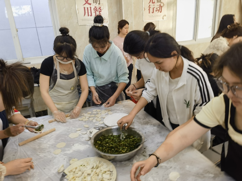 活动中,同学们在食堂大师傅的指导下,制作了柳叶饺子、元宝饺子以及新疆拉条子,也感受到了一餐一食来之不易,以后要更加珍惜粮食。“原来一顿简简单单的饺子,要想做的好吃也有这么多的讲究,劳动是这么的快乐,自己的劳动成果是这么的美味!”19学前的吾拉尔说。