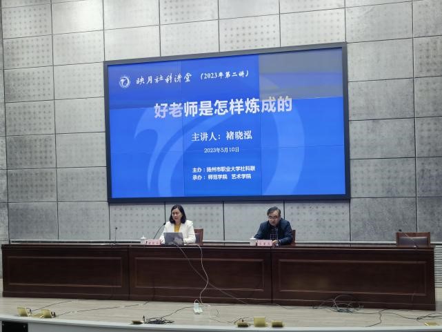 5月10日下午,“映月社科大讲堂”2023年第二讲在betway必威中文版 映月学术报告厅开讲,本期“映月社科大讲堂”由betway必威中文版 社科联主办,师范学院、艺术学院承办。扬州市育才小学副书记、副校长褚晓泓以《好老师是怎样炼成的》为题作了专题讲座,师范学院院长厉爱民主持,师范学院全体教职工、19级新疆班学生以及艺术学院音乐教育、美术教育专业的学生两百余人聆听了本次讲座。
