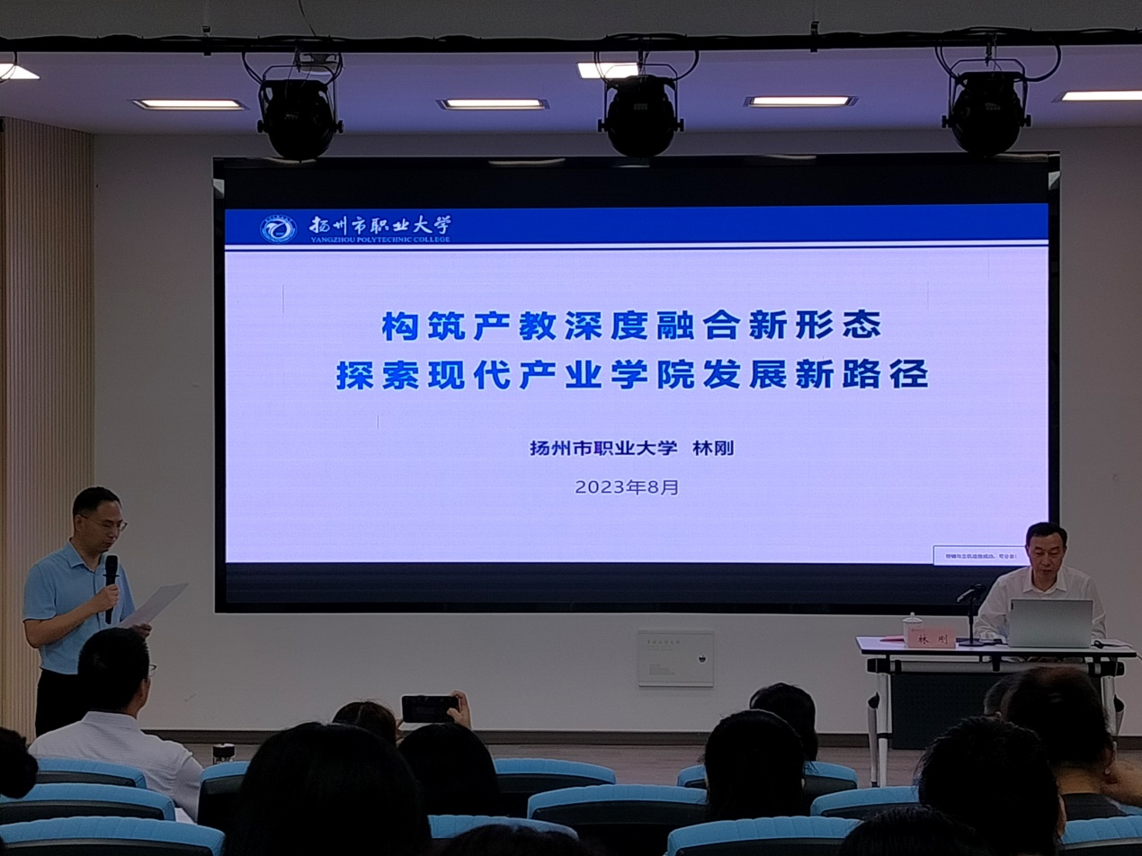 8月9日上午,学校党委副书记、校长林刚为2023年江苏省中职学校学前教育类专业负责人及骨干教师培训班学员做了题为《构筑产教深度融合新形态,探索现代产业学院发展新路径》的学术报告,报告会由师范学院副院长金本能主持,来自全省部分中职学校参训教师40余人到会听讲。