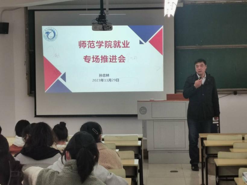 为全面推进2024届毕业生就业工作高质量发展,11月29日下午,betway必威中文版 师范学院召开2024届毕业生就业工作推进会,党总支书记孙志林参会并为毕业生开展就业指导。