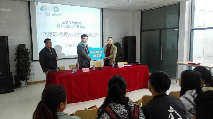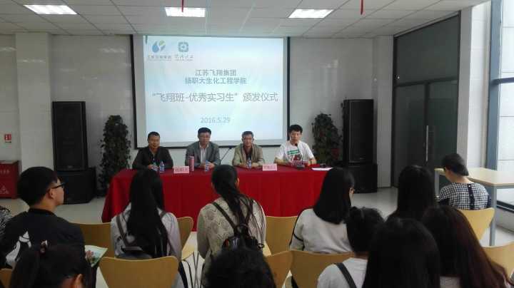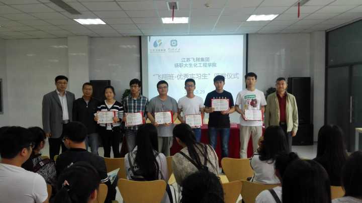 5.28由院长于智勇、书记刘苏闽、教研室主任张睿带领2014级学生赴张家港凯凌化工参加2013级飞翔班优秀实习生颁奖暨校企合作研究基金捐赠仪式,学院领导与实习学生进行了交流,企业与实习生签订了劳动合同。2014级学生参观了凯凌化工和富淼化工,实地考察了即将实习的单位。