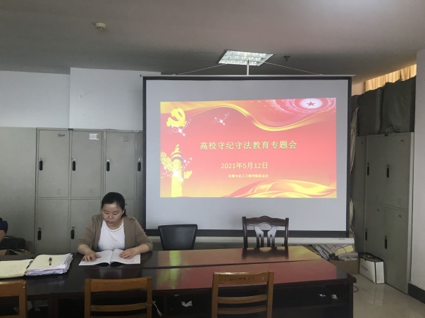 专题活动现场,学院党总支向化工、食品药品、学工三个支部书记发放了校纪委办精心搜集编印的《高校违纪违法典型案例选编》教育读本。院党总支宣传委员、学工党支部书记吴美瑾围绕读本,列举了近年来部分高校教师违纪违法的案例,向包括党员干部在内的全体教职员工进行了深刻剖析,并以种种不良现象为警钟,教育提醒党员干部、每一位教职员工要规范自己的教育行为,严守法纪底线。