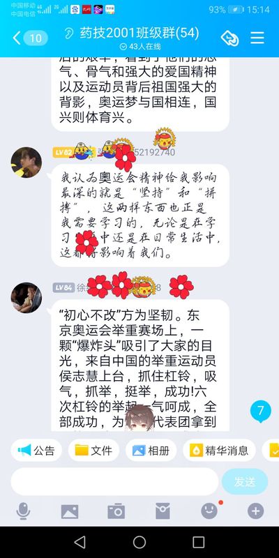 “茅经典的故事告诉我们即使身体有缺陷,也不要轻言放弃。作为新时代大学生,面对困难我们要勇于挑战,将奥运精神融入自己的言行举止中。”这是药技2101班朱路荣同学的心里话。食品1901班周佳慧同学说,从奥运健儿身上我们学习到了可贵的品格,在日常学习与工作中我们要做到坚守,当遇到困难挫折时我们要学会坚韧。“我们每个人都应该有梦想,更应该有为了这个梦想而拼搏的勇气”食品1901班陈晓慧在心中这样筑起信念。食品2102班李竹青、汤宇豪分别以工整的字体、漂亮的书法在班级群中呈现纸质版观后感……上了近一小时的思政课,同学们丝毫没有因为周六想要休息的意愿,一下课,大家心中的想法、体会如泉水奔涌而出。这个下午,学院各班级群被同学们的观后感刷屏了。