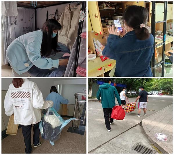 为了有序做好这项工作,确保每个环节不出差错,朱俊宇同学牵头制定了《生化学院学生党员、党员发展对象、入党积极分子寄送未返校毕业生行李任务表》。联系学生、确认寄送、收拾整理、打包运送……这一系列环节分工明确,衔接到位。朱俊宇、石夕广等同学先行解决了13#108、13#508等宿舍未返校毕业生的行李寄送问题,然后投入到新的任务中。女生行李多、杂,寄送任务较重。张盼盼、尹东妮、范伊静等同学在3#112、3#308、3#310等宿舍中收拾、整理、摆放衣物,不时通过视频与未返校同学进行沟通,有时忙碌得连腰都直不起来。杨腾皓等同学集中于3#宿舍楼前,耐心等待行李的出现。陈朗、高礼贤等同学在3#宿舍楼和菜鸟驿站之间来回奔波,大汗淋漓。这一包包寄走是行李,寄不走的是青春和友谊。