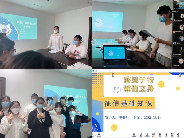 在完成2022届毕业生贷款确认工作基础上,李银川老师召开“云”座谈会,为16名毕业生详细解读了《生源地助学贷款还款之南》。5月10日至20日,各班召开诚信教育主题班会,多角度分享诚信感悟。5月11日,学生通过线上诚信专题讲座掌握了征信基础、五险一金等方面的知识,明确了人生规划。