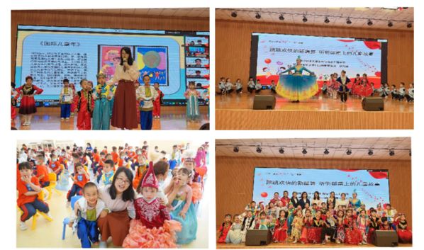“我站成一棵胡杨,眺望你的模样……”“五十六个星座五十六支花,五十六族兄弟姐妹是一家……”礼堂大屏幕上暖场播放着《新疆是个好地方》、《爱我中华》。扬州大学第二幼儿园马田圃小朋友以一曲小提琴演奏《可爱的一朵玫瑰花》拉开了活动序幕。在悠扬的旋律中,穿着不同鲜艳民族服装的小朋友们和老师、援疆教师王承莉跟着火热的节奏共同跳起欢快的舞蹈《新疆好巴郎》《欢乐地跳吧》。小朋友们忽而抖抖肩、忽而挥挥手、忽而侧侧身,自带舞蹈天赋,活泼可爱极了。