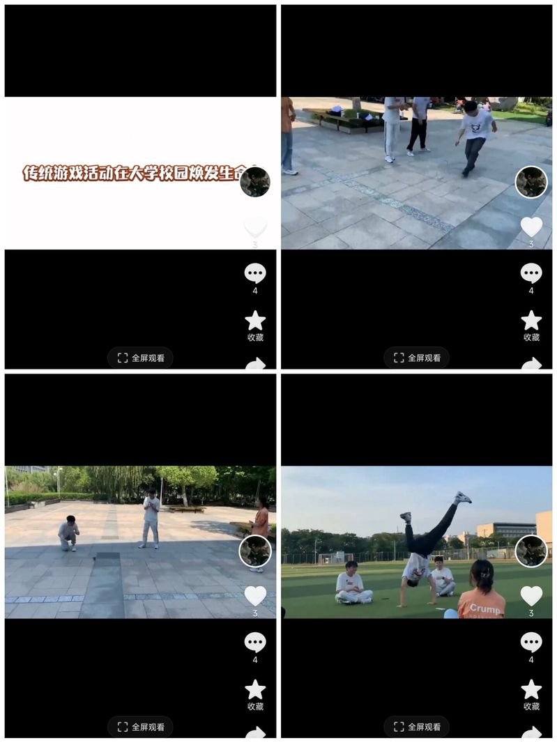 很快“微视频”就被制作好了,上传至“抖音”平台后很快引来了关注和点赞。滚铁环、打陀螺、丢手绢,这些传统游戏活动通过传承在大学校园焕发出生命力。希望这个“微视频”可以通过网络更好地传播传统文化。