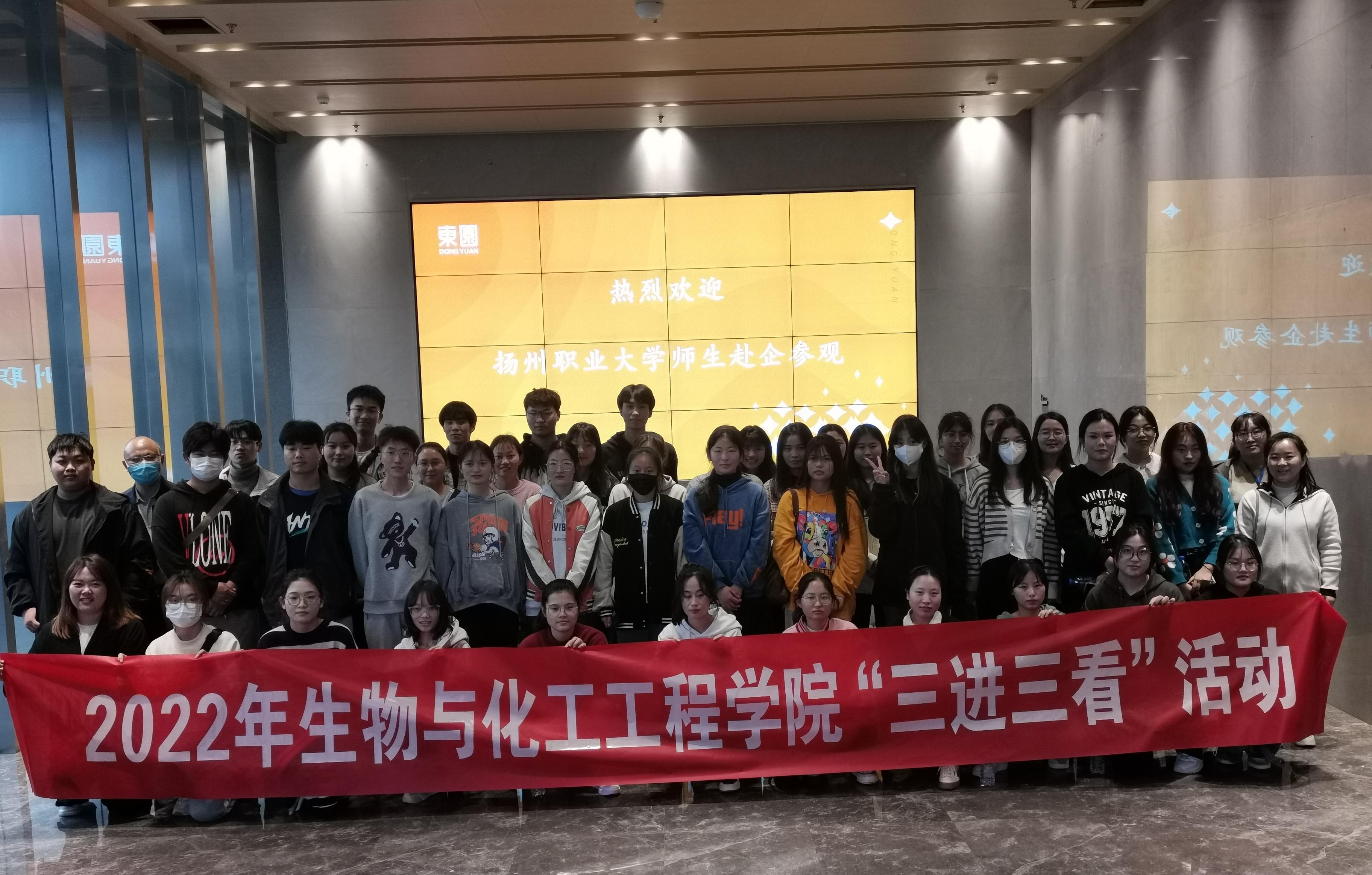 为进一步拓展毕业生实习就业平台,打通人才协同培养“任督二脉”,提高毕业生留扬率,助力扬州本土企业发展,11月11日下午,生物与化工工程学院开展了“三进三看”活动。2023届毕业生代表前往扬州东园集团实地参观,并与企业领导、有关部门负责人及校友代表进行了双向互动。
